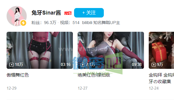 兔牙Sinar酱是一位在B站上非常受欢迎的舞蹈UP主,以其出色的身材、迷人的颜值和多样的舞蹈风格吸引了大量粉丝。她不仅在B站上拥有88万粉丝,还因其独特的艺术表现和对舞蹈的热爱而备受关注。